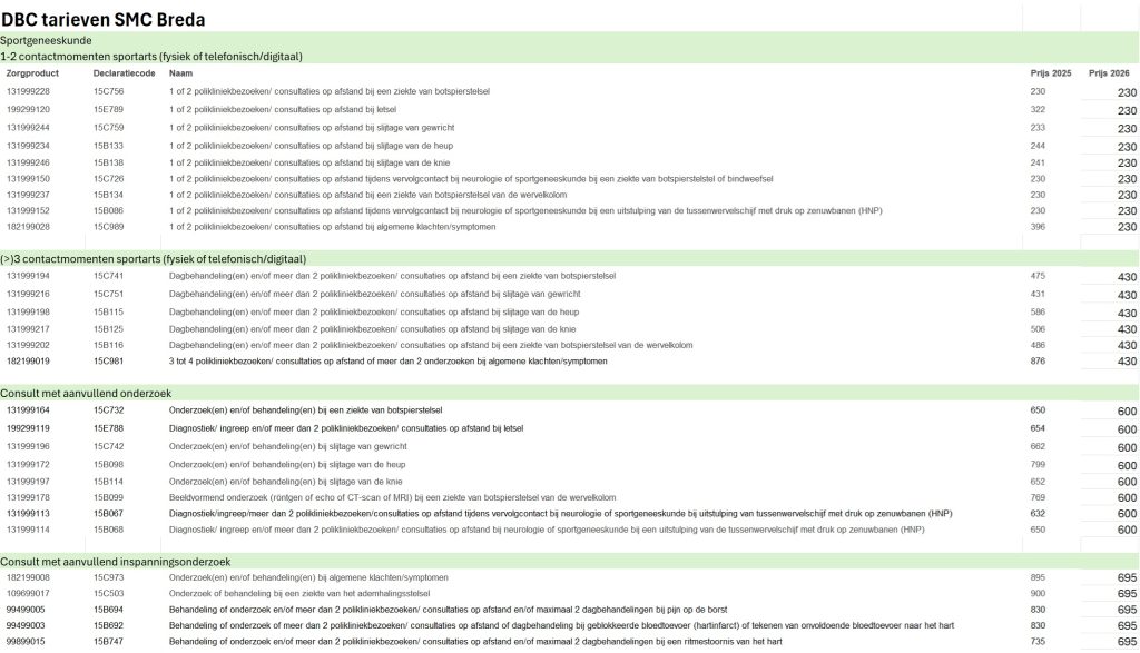 SMC Breda, Sportgeneeskunde DBC, 2026